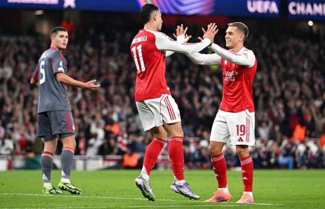 此番再度主场对阵这家希腊豪门,阿森纳上半场踢得不错。第12分钟,厄德高送出直塞,约克雷斯禁区内起脚低射被扑了一下击中立柱弹出,马丁内利跟进补射得手,帮助阿森纳1-0领先,这个比分也持续到上半场结束。