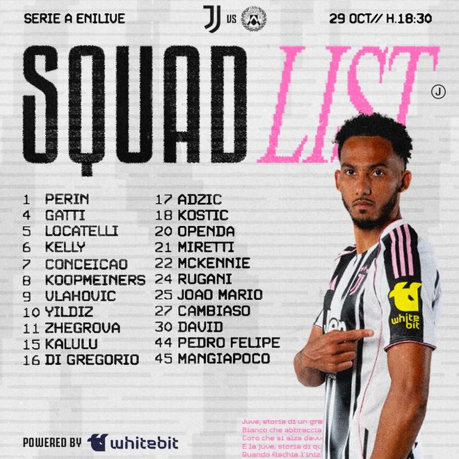 雷速体育10月29日讯 北京时间10月30日凌晨1:30,尤文图斯将在意甲主场迎战乌迪内斯,赛前尤文官方公布了球队本场的大名单。其中队内的法国中场凯夫伦·图拉姆,缺席了本场比赛的大名单。