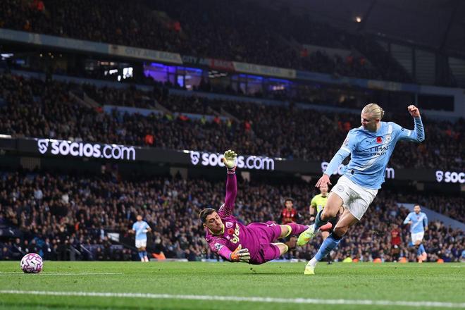 挪威神锋哈兰德延续了本赛季的恐怖状态,此役对阵伯恩茅斯梅开二度,将个人英超进球数提升至13球(前10轮),刷新了自己在曼城生涯的同期进球纪录。他的17粒赛季总进球(含欧冠)比英超其他球员至少多出8球,甚至超过了诺丁汉森林、狼队等12支球队的总进球数。